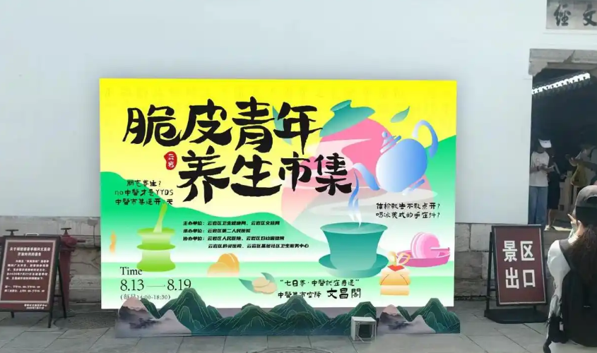 8 月 24 日下午,贵阳市云岩区文昌阁热闹非凡,一场以 “脆皮青年养生市集” 为主题的沉浸式中医药文化体验活动在此火热开展,现场人头攒动,氛围浓厚。
