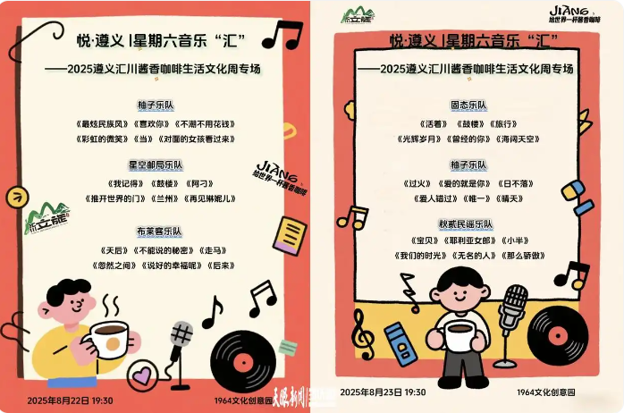 8月22日、23日晚7点半 汇川酱香咖啡生活文化周携手 悦・遵义|星期六音乐“汇” 两场味觉和听觉的双重盛宴 正带着满格惊喜向你奔赴而来