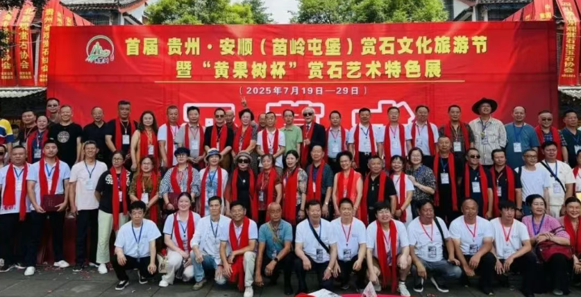 7月19日上午,安顺“黄果树杯”赏石艺术特色展在安顺苗岭屯堡古镇隆重开幕。本次活动由安顺市文学艺术界联合会、安顺市西秀区人民政府指导,由贵州省观赏石协会、安顺海烨旅游地产开发有限公司主办,由安顺市奇石艺术协会、上海方野文化发展有限公司、安顺苗岭屯堡古镇承办。来自全国 20 多个省、市、区以及韩国、日本的藏石名家与商户200余人参加。