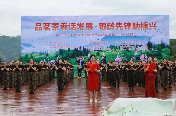 7月9日,普安县在茶源街道茶源文化广场举办“品茗茶香话发展·银龄先锋助振兴”茶文旅融合发展交流汇演活动,吸引1000余名群众参与。