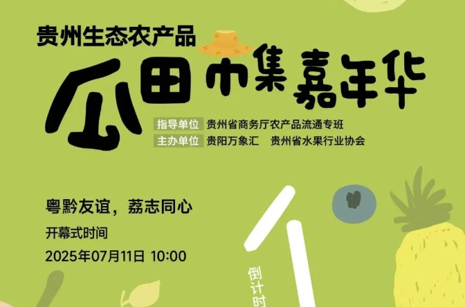 为贯彻落实乡村振兴战略,深化农商合作,畅通贵州生态农产品供销渠道,提升市场竞争力与品牌价值,省商务厅联动相关单位,将于7月11日至13日在贵阳万象汇LG层外广场举行“贵州生态农产品·瓜田市集嘉年华”首场活动,活动启动仪式将于7月11日10点举行。