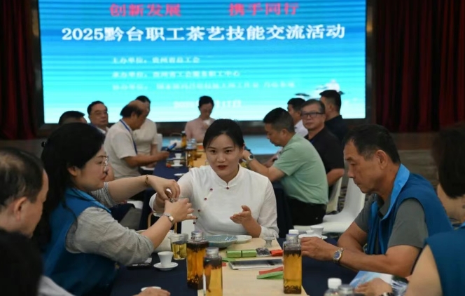 以茶为媒、以技会友。6月17日,以“创新发展、携手同行”为主题的2025黔台职工茶艺技能研讨交流暨茶文化品鉴活动在贵阳拉开帷幕,来自黔台两地的60名职工齐聚一堂,同台切磋茶技艺,共扬中华茶文化。