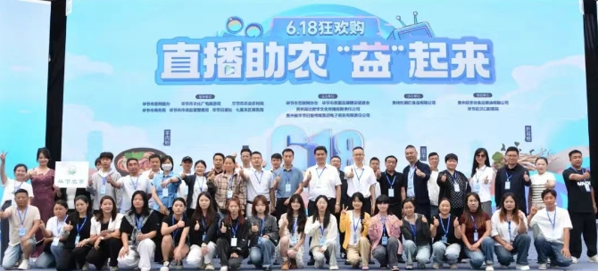 6月15日,毕节“6.18狂欢购·直播助农‘益’起来”公益助农直播活动在七星关区同心公园启动。