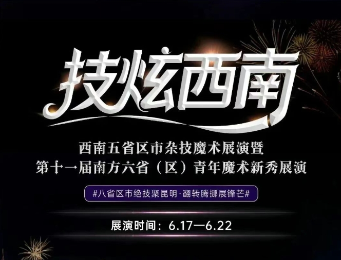 为贯彻落实党的二十大精神,深入学习实践习近平文化思想,促进区域性杂技艺术的互动交流,推进杂技艺术的传承发展,经中杂协批准,“技炫西南”——西南五省区市杂技魔术展演暨第十一届南方六省(区)青年魔术新秀展演系列活动定于2025年6月在昆明举行。