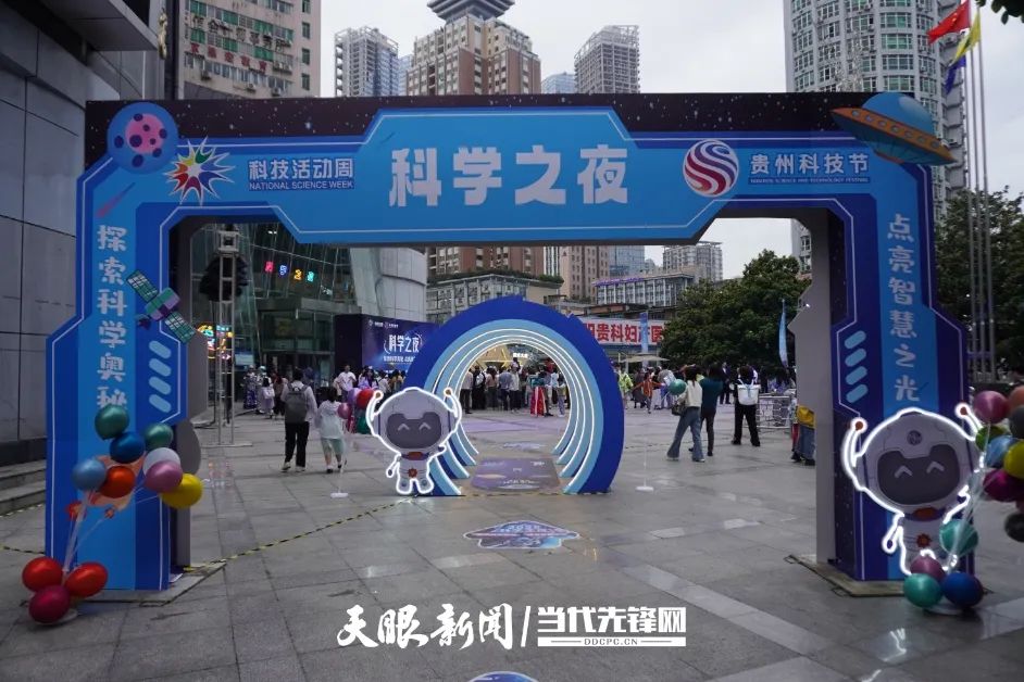 夜幕降临,贵州科技馆前充满着欢声笑语——一场场生动的科学实验表演,与可爱的机器人偶、机器狗互动,动听的现场演奏、演唱,4D影院播放动物纪录片,沉浸式科普体验打卡……