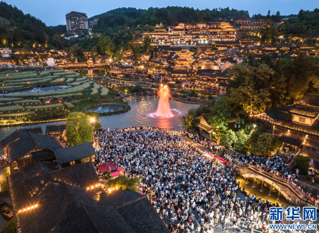 近日,贵州乌江寨国际旅游度假区以“新业态、新场景、新体验”为核心,全面升级文旅产品体系,推出系列融合传统民俗与现代科技的沉浸式项目和特色业态,吸引广大游客前来打卡游玩。让游客白天感受非遗文化,夜晚畅享科技艺术,真正实现“一寨玩转多彩贵州”。