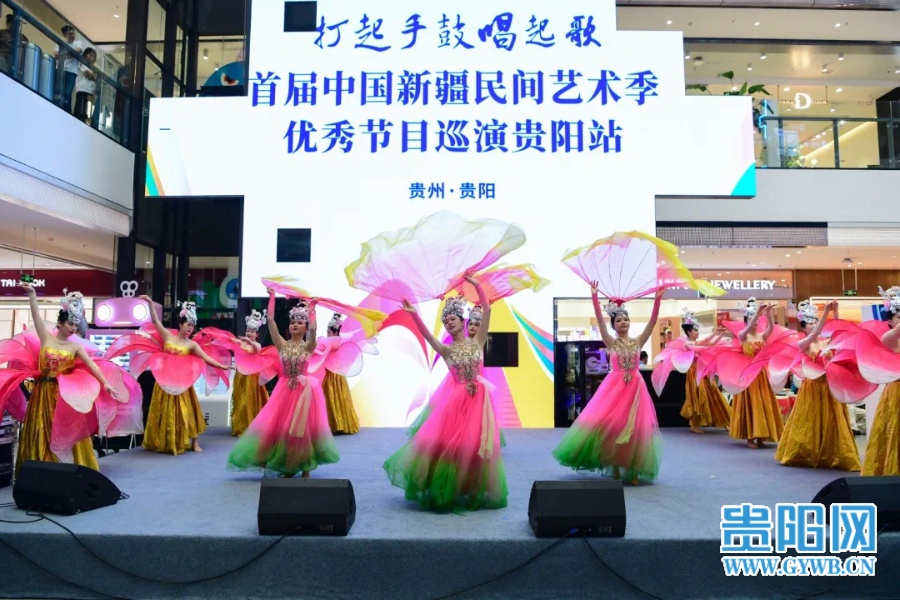 5月4日,“打起手鼓唱起歌”首届中国新疆民间艺术季优秀节目巡演走进观山湖区国贸玖福城,新疆、贵州两地民间艺术家同台献艺,用艺术对话架起民族交往交流交融的桥梁。