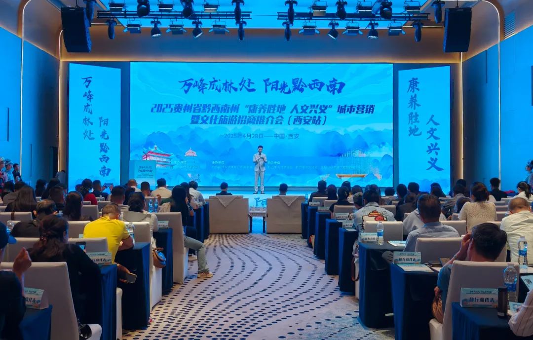 4月28日,2025黔西南州“康养胜地、人文兴义”城市营销暨文化旅游招商推介会走进陕西西安,盛邀西安朋友到贵州黔西南开启多彩之旅。