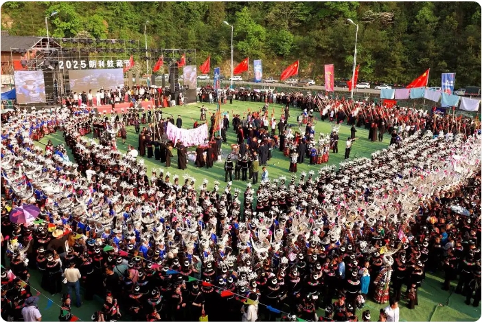 4月16日-17日,黔东南苗族侗族自治州凯里市三棵树镇朗利苗寨举行的鼓藏节之“跳鼓年”系列活动达到了高潮,近万名苗族同胞身着节日盛装聚集在一起,跳起鼓舞吹起芦笙,表达对祖先的崇拜和敬仰,祈求风调雨顺、五谷丰登、人丁兴旺。