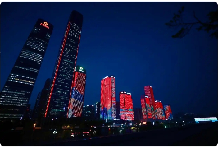 近日,观山湖区贵州金融城开启了一场全民国家安全教育日主题灯光秀,吸引众多市民驻足观看。此次灯光秀从4月11日持续至4月17日,每天晚上7点至9点准时亮灯。