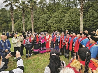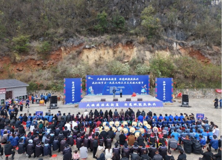 3月31日(农历三月三),紫云自治县火花镇九岭村民族文化广场沉浸在一片欢乐祥和的节日氛围中,一场极具布依族文化特色的“民族团结展新篇 非遗赋能促振兴‘我们的节日——火花九岭布依古寨三月三风情盛宴’活动”燃情开启。上千名布依族同胞身着绚丽多彩的传统盛装,齐聚于此,通过拦门酒、竹竿舞、祭祀、丢糠包、打糍粑、民族传统文体竞赛以及文艺汇演等丰富多样的活动,共同欢庆这一盛大节日。
