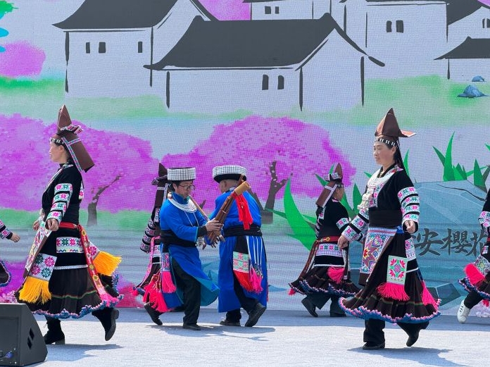 3月22日,“数谷贵安 花漾高峰 民俗文艺展演”活动在贵安樱花园内上演,来自贵安新区各乡镇(街道)带来的舞蹈、独唱、武术展演轮番上阵,为前来赏花的游客带来了一场精彩纷呈的民俗文化盛宴。