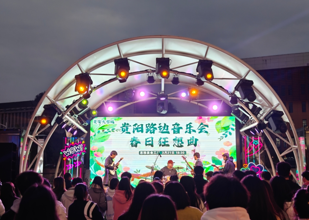 3月21日,贵阳路边音乐会·贵安大学城专场在贵安新区思雅美食工厂举办。活动期间,来自贵州中医药大学、贵州师范大学等多所省内高校的学生围绕“春日狂想曲”主题,以乐队演唱为表演形式,呈现了一场精彩纷呈的音乐盛宴,让春日的夜晚因音乐而更加璀璨。