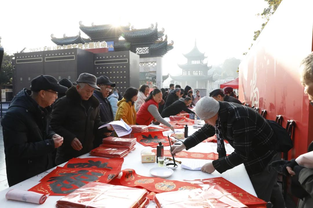 祥龙摆尾辞旧岁,金蛇纳福启新程。在2025年春节即将到来之际,孔学堂继续沿袭传统,邀请了10位省内知名书法家齐聚甲秀楼城南胜迹广场为广大市民群众写春联、送福字。另邀请了4位年画制作版画家在现场指导民众印门神、财神、年画等,将新春的祝福送到市民游客手中,营造浓厚的新春氛围。诚邀各位市民游客前来参与,领取这份年味满满的“新年礼物”!同时,现场将设置“互动体验区”,市民群众可以根据自己喜好,亲手书写新春祝福!