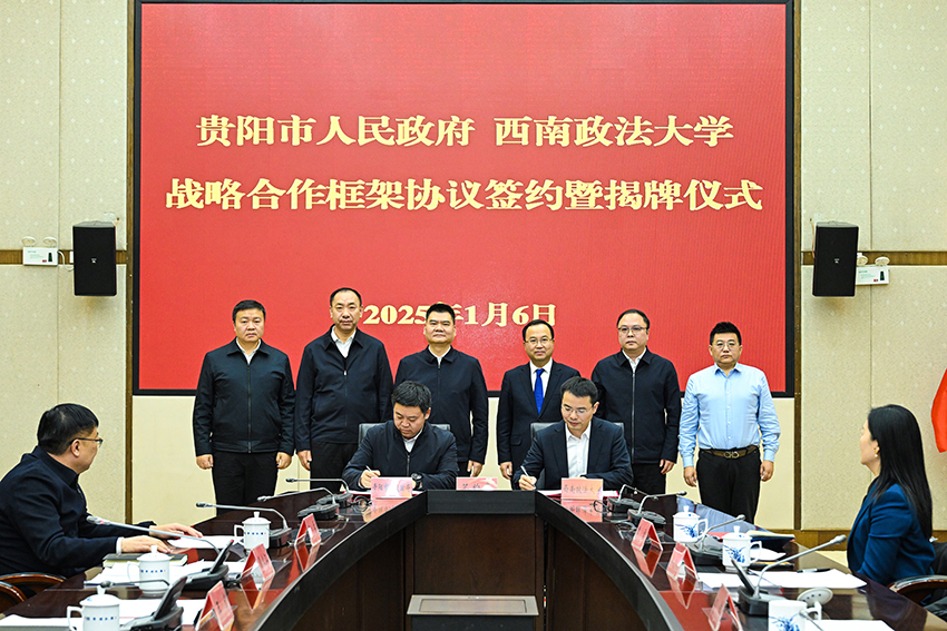 1月6日,贵阳市人民政府与西南政法大学战略合作框架协议签约暨揭牌仪式举行。市委副书记、代市长王宏,西南政法大学党委副书记、校长林维讲话并揭牌。