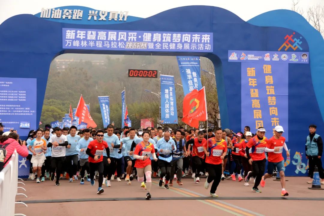 1月1日,“新年登高展风采·健身筑梦向未来”万峰林半程马拉松挑战赛暨全民健身展示活动在兴义阳光谷旅游度假区举行。来自黔西南州文体广旅系统党支部党员、工会成员,离退体干部、文旅推荐官,各县(市)马拉松协会(跑团)成员及部分路跑爱好者穿越在阳光谷旅游度假景区、万峰林景区,零距离体验黔西南大美风光,尽情享受运动带来的健康乐趣。