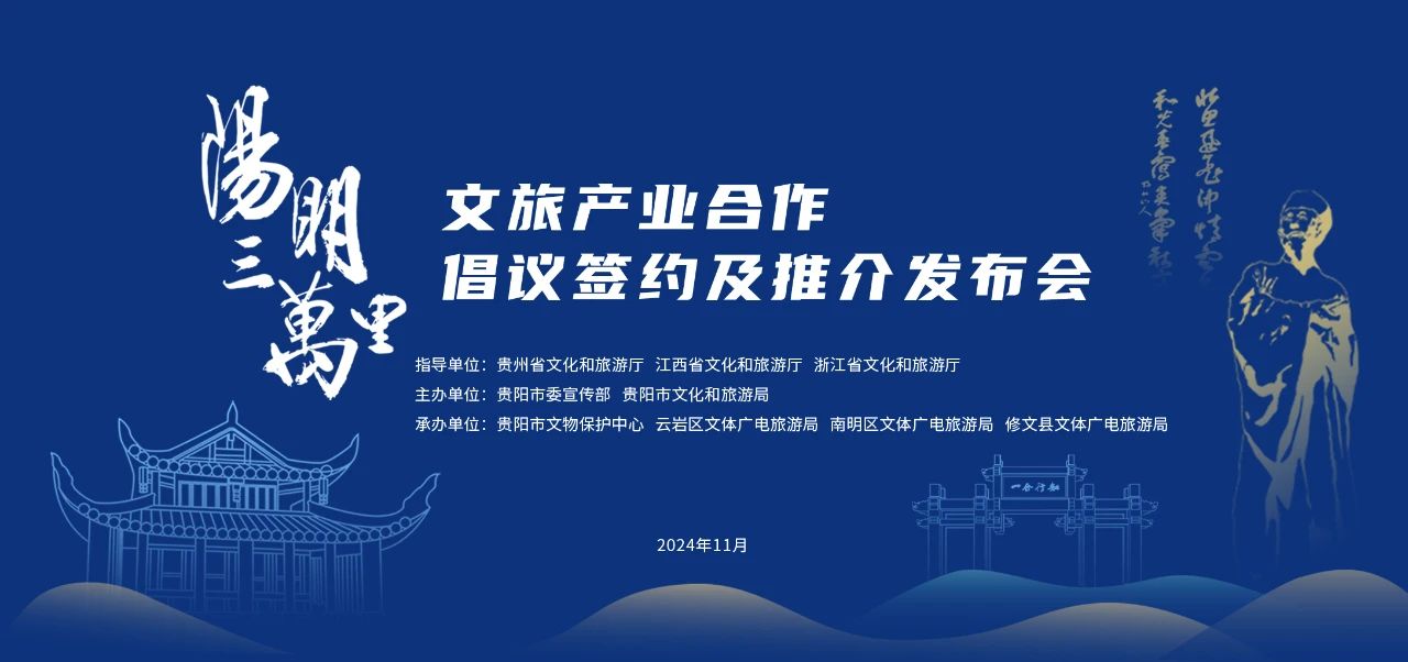 贵州是阳明心学诞生地,阳明文化已成为贵州人文精神的宝贵财富,为深挖整理和研究转化,传播推广阳明文化,2024年“阳明三万里”文旅产业合作倡议签约及推介发布会活动将于11月8日正式举行。