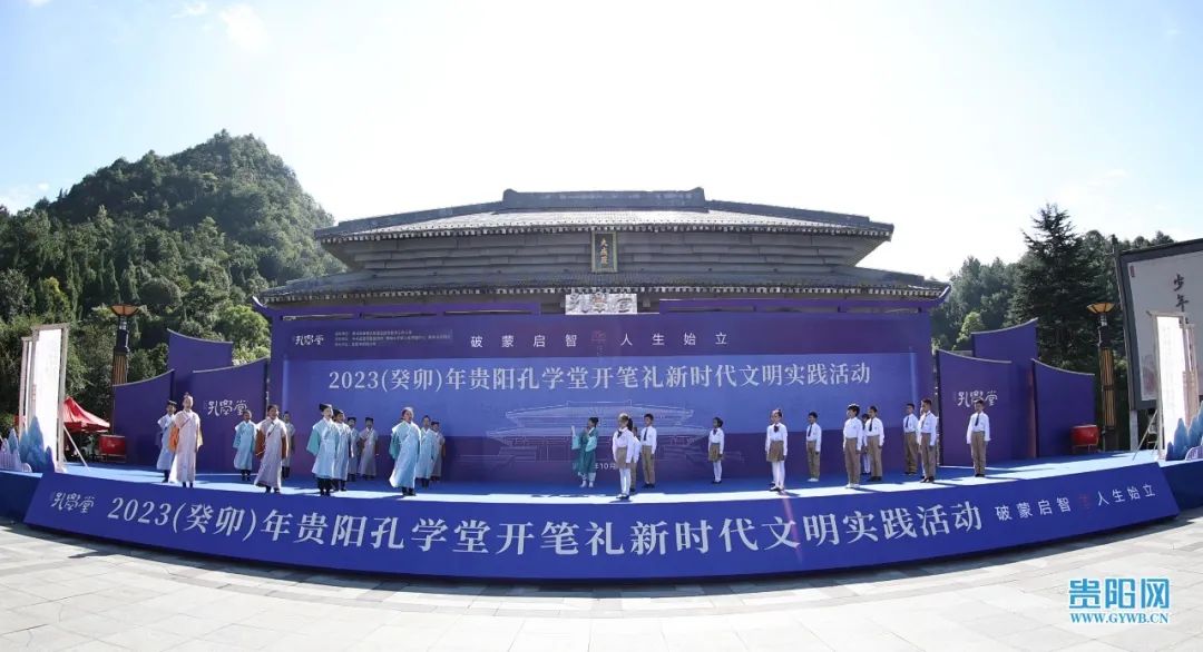 10月9日,“破蒙启智·人生始立” 2023(癸卯)年贵阳孔学堂开笔礼在礼仪广场正式举行。300余名来自环西小学的一年级新生齐聚大成殿前,正衣冠、拜先师、点朱砂、写“人”字、诵经典,行好人生第一礼。