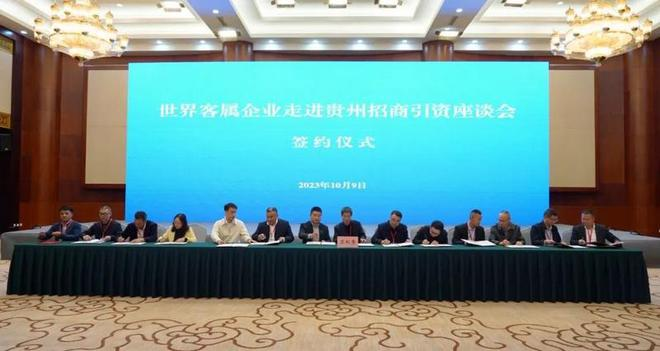 10月9日,世界客属企业走进贵州招商引资座谈会在贵阳市举行。现场举行签约仪式,签约投资项目7个,投资金额累计95.2亿元人民币。