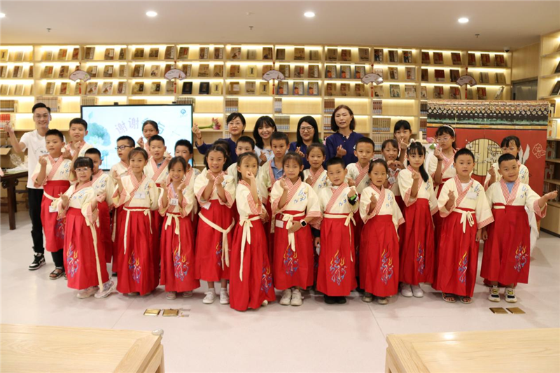 为丰富少年儿童的文化生活,弘扬中国传统茶道文化,感受茶文化魅力,贵阳市少儿图书馆举办了全民阅读“我们的中国梦——文化进万家活动”:少儿茶修——“荷”以消暑,唯有茶清欢。