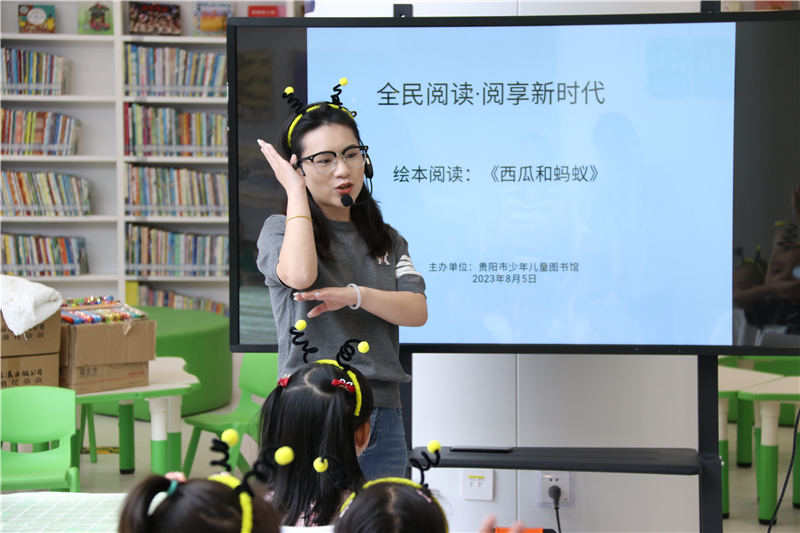 为激发少年儿童的阅读兴趣,提升少年儿童的审美艺术、动手能力等综合实力,贵阳市少儿图书馆举办了全民阅读“我们的中国梦——文化进万家”活动:绘本阅读《西瓜和蚂蚁》。