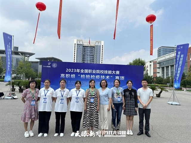 8月6日,2023年全国职业院校技能大赛(高职组)“检验检疫技术”赛项在山东医学高等专科学校落下帷幕,来自全国的53支代表队159名选手参加比赛,安顺职业技术学院应用医药系张露、李婷婷、幸新晏3名同学凭借精准娴熟的专业技能和稳定良好的心理素质,在激烈角逐中脱颖而出,斩获团体三等奖,成为贵州省唯一获奖院校。