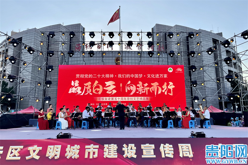 2023白云周末大舞台“品质白云 向新而行”白云区恢复建置五十周年原创文艺精品展演活动在白云区行政中心广场举行。全区各单位部门、乡镇街道负责人以及时代楷模、道德模范、党员代表、离退休老干部、退役军人代表、公安干警、企业工人代表、居民群众等近千人相聚广场,同歌共舞新时代新生活。