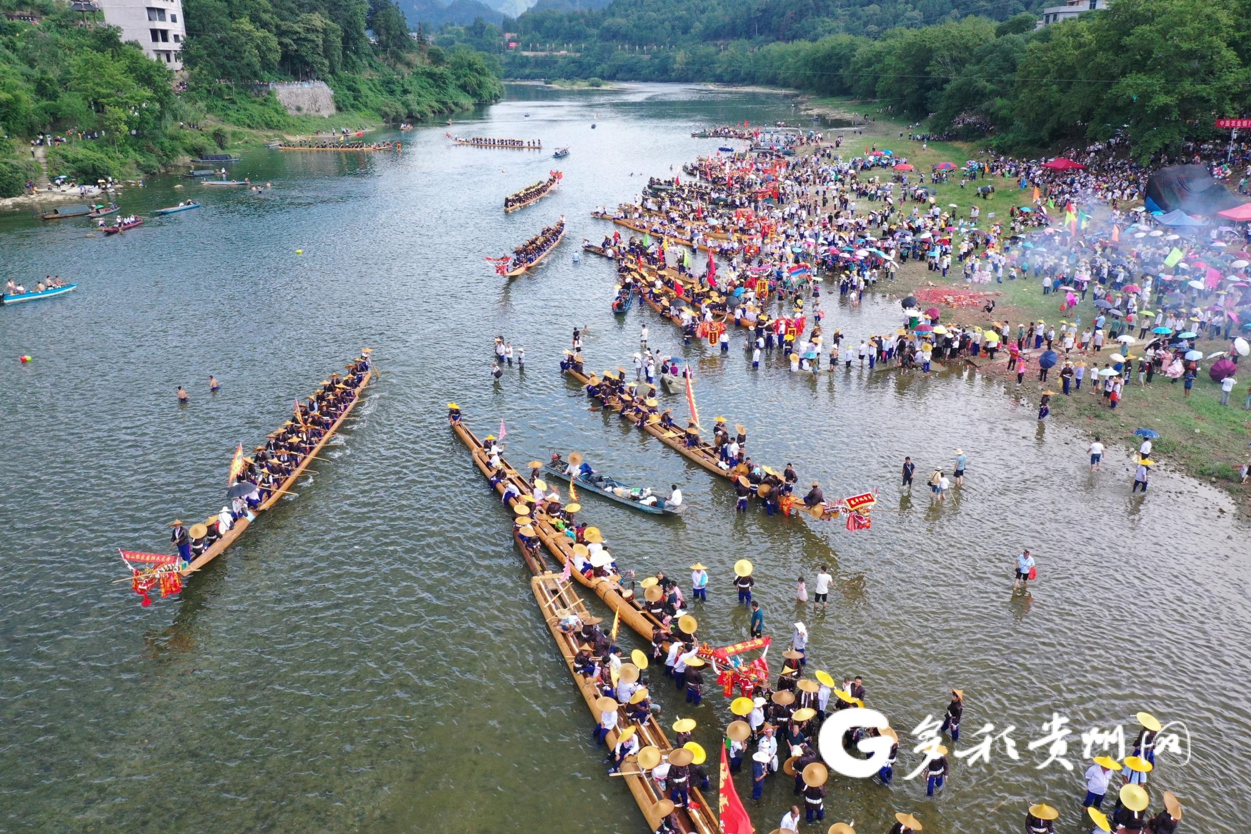 7月12日,中国·台江2023年施洞苗族独木龙舟节在黔东南州台江县施洞镇拉开帷幕,37条独木龙舟在清水江上挥桨竞渡,吸引众多当地群众和省内外游客观看。