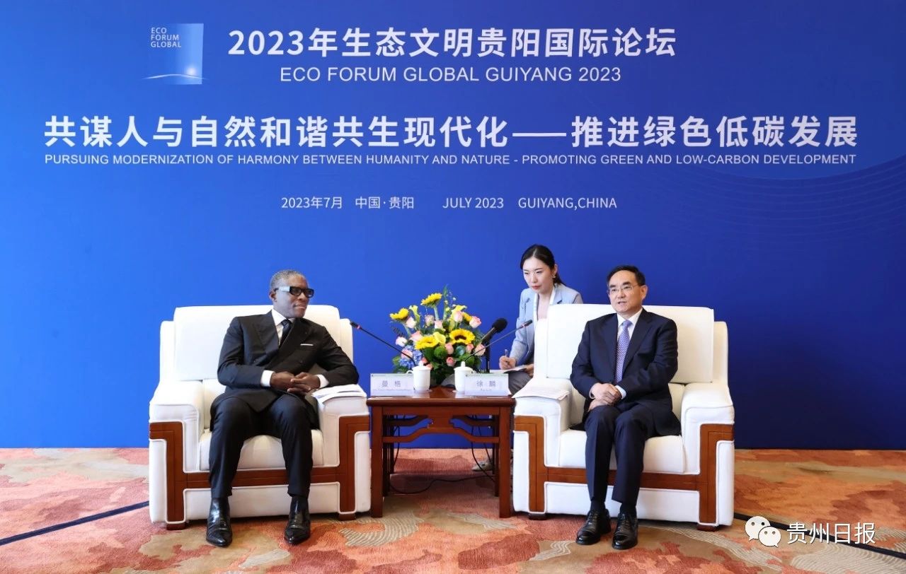 7月8日,省委书记、省人大常委会主任徐麟在贵阳会见来黔出席2023年生态文明贵阳国际论坛的赤道几内亚副总统曼格一行。