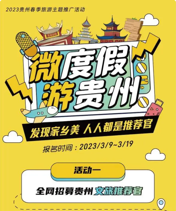 “2023年贵州省文旅产品创意大赛”作品持续征集中,“山野新秘境”“城市游侠客”“自然疗养所”“博物大课堂”“文化新体验”五大产品主题,等你来投稿!