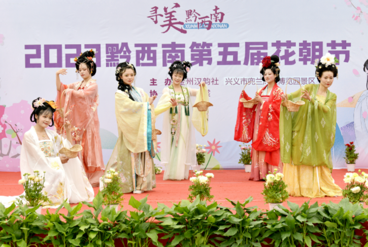 3月4日,黔西南第五届花朝节在兴义市兜兰产业园开启,200余名汉服爱好者身穿汉服“穿越”时光,感受传统文化之美。
