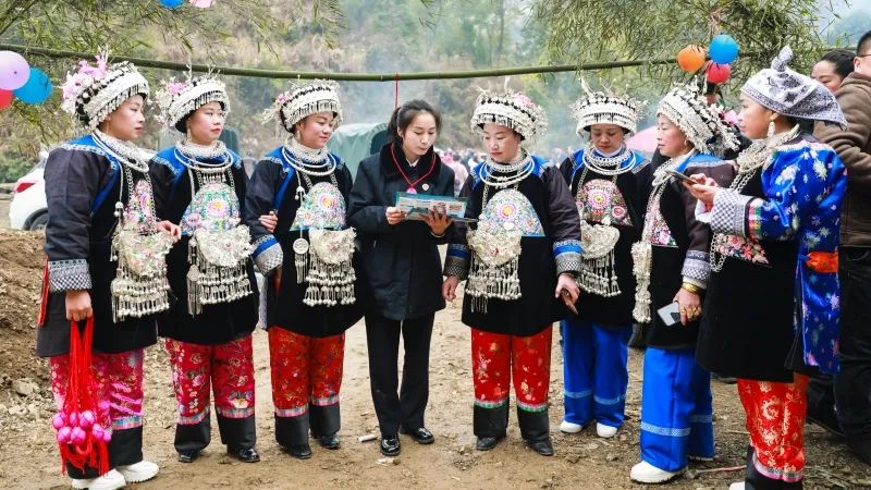 黔东南州三穗县寨头村被誉为“中国苗族第一村”,每年的农历二月初二都会举行祭桥接龙等一系列充满民族气息的文化活动,俗称“二月二”祭桥节,寓意迎接平安,风调雨顺。2月21日,上千名群众和游客欢聚三穗县寨头村举行“二月二”祭桥节活动,三穗县人民检察院以持续开展党政机关“入村寨进社区走企业访群众”大走访活动为契机,组织干警到节日现场开展防范电信网络诈骗、养老诈骗、非法集资、禁毒知识等普法宣传,为民族节日增添法治色彩。