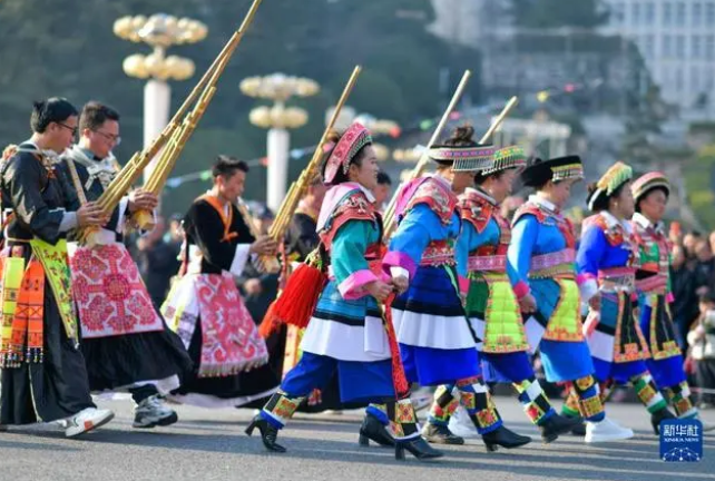 当日是正月初九,贵州省黔南布依族苗族自治州龙里县举办传统民俗“踩街”活动,通过花灯巡演、花棍舞、芦笙舞、舞龙舞狮等民俗活动,欢度新春。