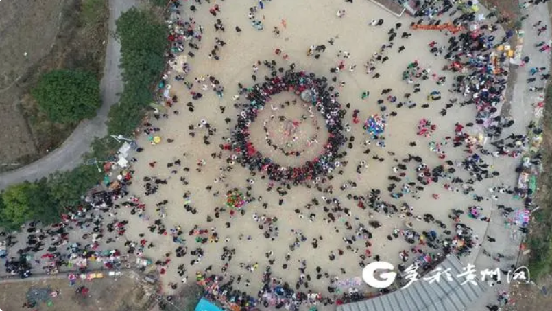 1月24日,大年初三,一年一度的习水苗族传统踩山节在醒民镇红岗村榨山坝举行。来自黔川渝滇毗邻四省(市)的苗族同胞欢聚一堂赶苗场、祭祀祖先、吹笙弄笛,载歌载舞,歌颂美好生活,共庆新春佳节。