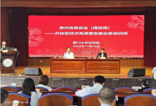 为进一步提升全省贸促系统队伍工作能力,提升外贸企业工作水平,助力贵州内陆开放型经济试验区建设,11月13日—14日,省贸促会(省博览局)组织在厦门大学开展了“开放型经济高质量发展业务培训班”,省贸促会(省博览局)副会长(副局长)刘忠进出席开班仪式并发表讲话。