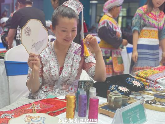 “苗绣、马尾绣……”在2022年贵州省锦绣计划苗绣(蜡染)妇女手工技能暨创新产品大赛比赛现场,来自全省的120名绣娘染娘以针为笔,以线为墨,演绎了“绣花能生香、绣鸟能闻声”的生动画卷。 举办此次大赛是贵州积极打造“贵州绣娘”品牌的有力举措,通过比赛不仅展示了苗绣(蜡染)妇女手工精湛技能和创新设计能力,还挖掘了一批市场潜力大、区域特色明显、附加值高的妇女手工精品,促进全省妇女特色手工产业锦绣计划发展,达到以赛促创业、促就业、促产业、促发展的目标。