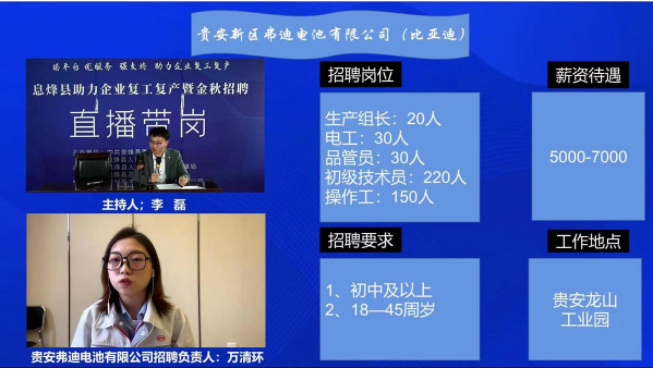 10月21日,为进一步强化公共就业服务促就业,贵阳市息烽县开展“助力企业复工复产暨金秋招聘直播带岗活动”,以直播形式推介上千个岗位,为求职者与企业之间搭建沟通桥梁,帮助实现人岗对接,促进高质量就业,助力企业复工复产。