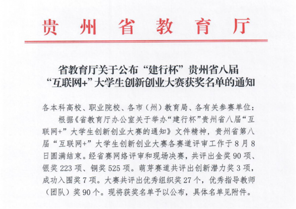 近日,“建行杯”第八届贵州省“互联网+”大学生创新创业大赛决赛评审结果公布。铜仁职业技术学院共获得1金7银2铜的好成绩,实现了在该项赛事上的历史性突破。
