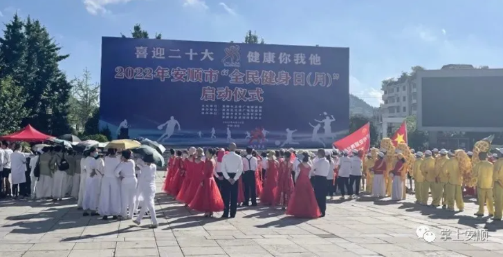 8月10日,由安顺市文体广电旅游局主办,西秀区文体广电旅游局承办的“喜迎二十大 健康你我他”2022年安顺市“全民健身日(月)”启动仪式在安顺市若飞广场举行。来自相关部门负责人及我市健身爱好者共300余人参加仪式。