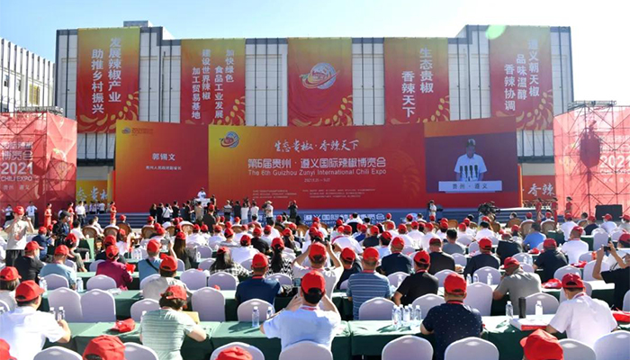 9月26日上午,以“生态贵椒·香辣天下”为主题的第6届贵州·遵义国际辣椒博览会(以下简称“辣博会”),在我市新蒲新区中国辣椒城开幕。省委书记、省人大常委会主任谌贻琴,省委副书记、省长李炳军作批示,副省长郭锡文宣读批示并宣布“辣博会”开幕,省政协副主席孙诚谊为“全国辣椒产业十强县”颁奖。市委书记魏树旺出席开幕式,市委副书记、市长黄伟致辞,市人大常委会主任范元平出席开幕式,市政协主席、市辣椒产业发展领导小组组长、第6届贵州·遵义国际辣椒博览会执委会主任覃儒方主持开幕式。