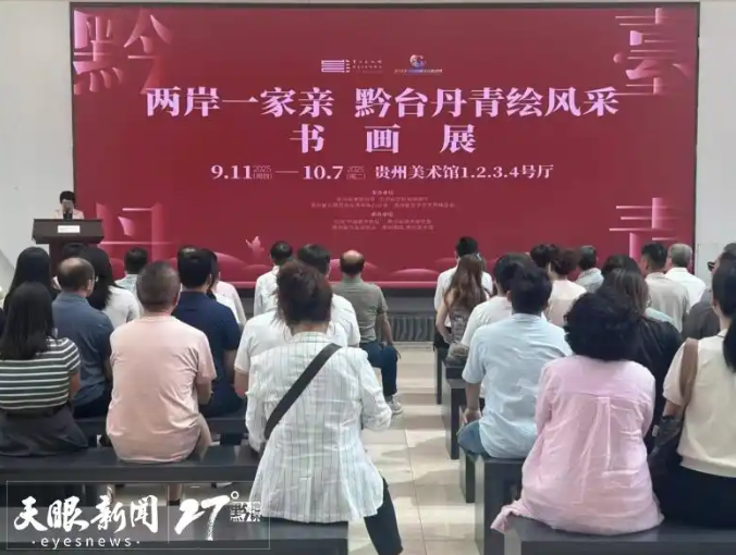 为纪念中国人民抗日战争胜利暨台湾光复80周年,进一步弘扬中华优秀传统文化,深化黔台两地文化交流合作,9月11日,“两岸一家亲 黔台丹青绘风采”主题书画展在贵阳开幕。
