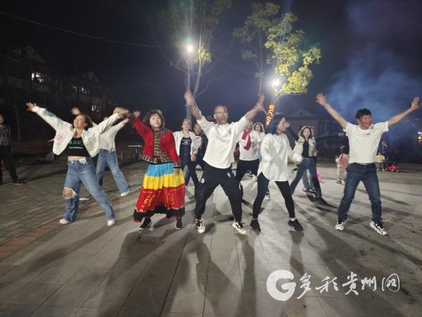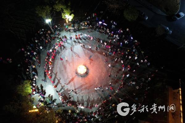 各地游客和当地群众一起跳篝火