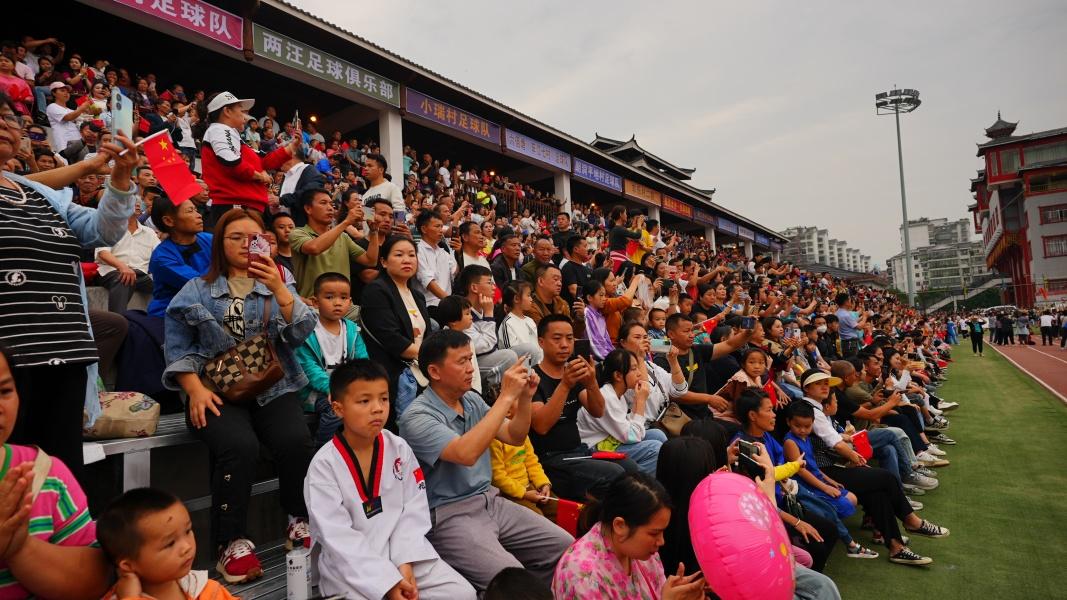 开幕式上,榕江车民小学足球宝贝齐跳快乐足球舞暖场。来自榕江三宝侗寨十个村的群众组成侗族大歌助威方队在足球场上演唱侗族大歌《天地人间充满爱》,千人苗族芦笙吹响,齐跳多耶舞,将球场变身民族文化大舞台。