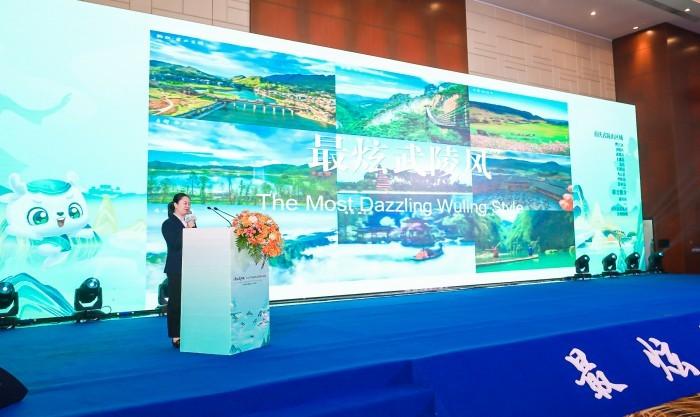 本次推介会充分发挥重庆武陵文旅融合营销平台价值,在重庆市文化旅游委指导下,邀约南川金佛山、重庆旅游集团、贵州傩城文旅等联合重庆精品景区及旅游企业融合推介。会上,推介官以“大重庆”“大武陵”“大三峡”3大旅游品牌、武陵山区域3条特色文旅线路为推介重点,串联颇具重庆地域特色的文艺演出,充分展示了巴山渝水的秀美风景和人文风情。