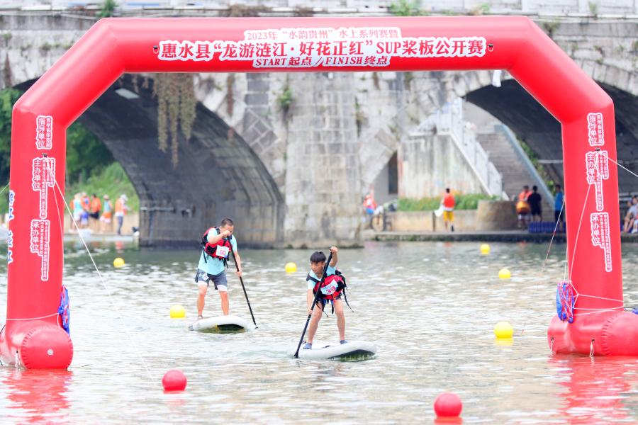 6月18日,“龙游涟江好花正红”桨板公开赛在黔南州惠水县开赛。作为惠水县2023年“水韵贵州”水上系列赛事之一,比赛吸引120余名选手齐聚惠水,展开了一场精彩绝伦的水上运动盛会。