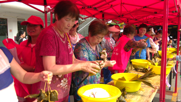 活动现场,各社区选送的舞蹈、歌曲、朗诵、古筝等节目精彩纷呈,表达了人民群众对党和祖国美好的祝福、对幸福生活的热爱。节目赢得了台下观众阵阵掌声,活动中还穿插有包粽子相关知识抢答环节。随后,居民们围在一起,捋粽叶、填糯米、压紧实、封口、扎捆,巧手翻飞,不一会儿功夫,三角形的漂亮粽子瞬间成型,在浓浓的氛围中,增加了对传统文化知识的了解。