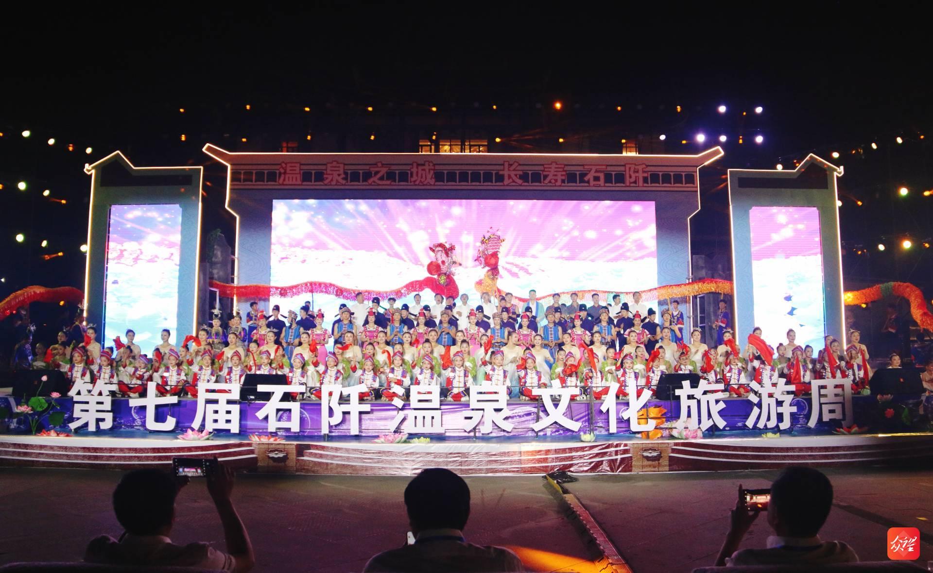 石阡温泉作为石阡旅游的一张“亮丽名片”,已有400多年的历史。开幕式紧扣石阡旅游文化主题,通过舞蹈、歌曲、说唱等形式,打造一场集视听、娱乐、互动、观赏为一体的石阡温泉文化主题晚会,带来了一场具有石阡文化旅游特色的饕鬄盛宴,节目精彩纷呈、轮番上演,让观众目不暇接。