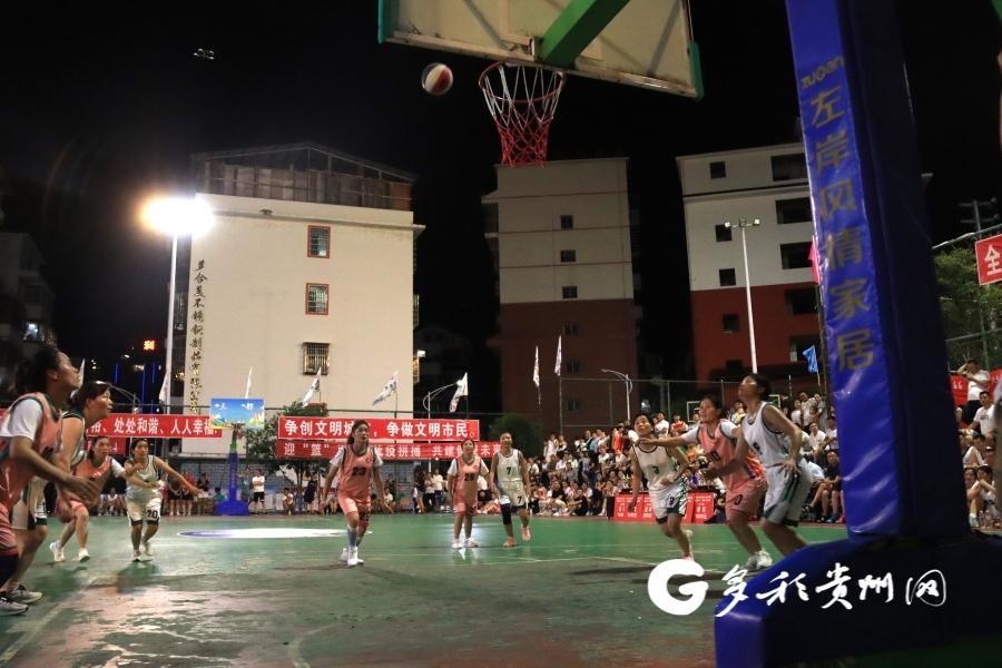 当晚,女子组冠军争夺赛率先开打,赛场上,抢球、传球、防守、投篮,双方铆足了劲,你追我赶不甘示弱,队员们团结协作,奋斗拼搏,精彩场面层出不穷。激烈的赛事吸引了众多观众到场观看,现场鼓声、掌声、加油呐喊声此起彼伏。