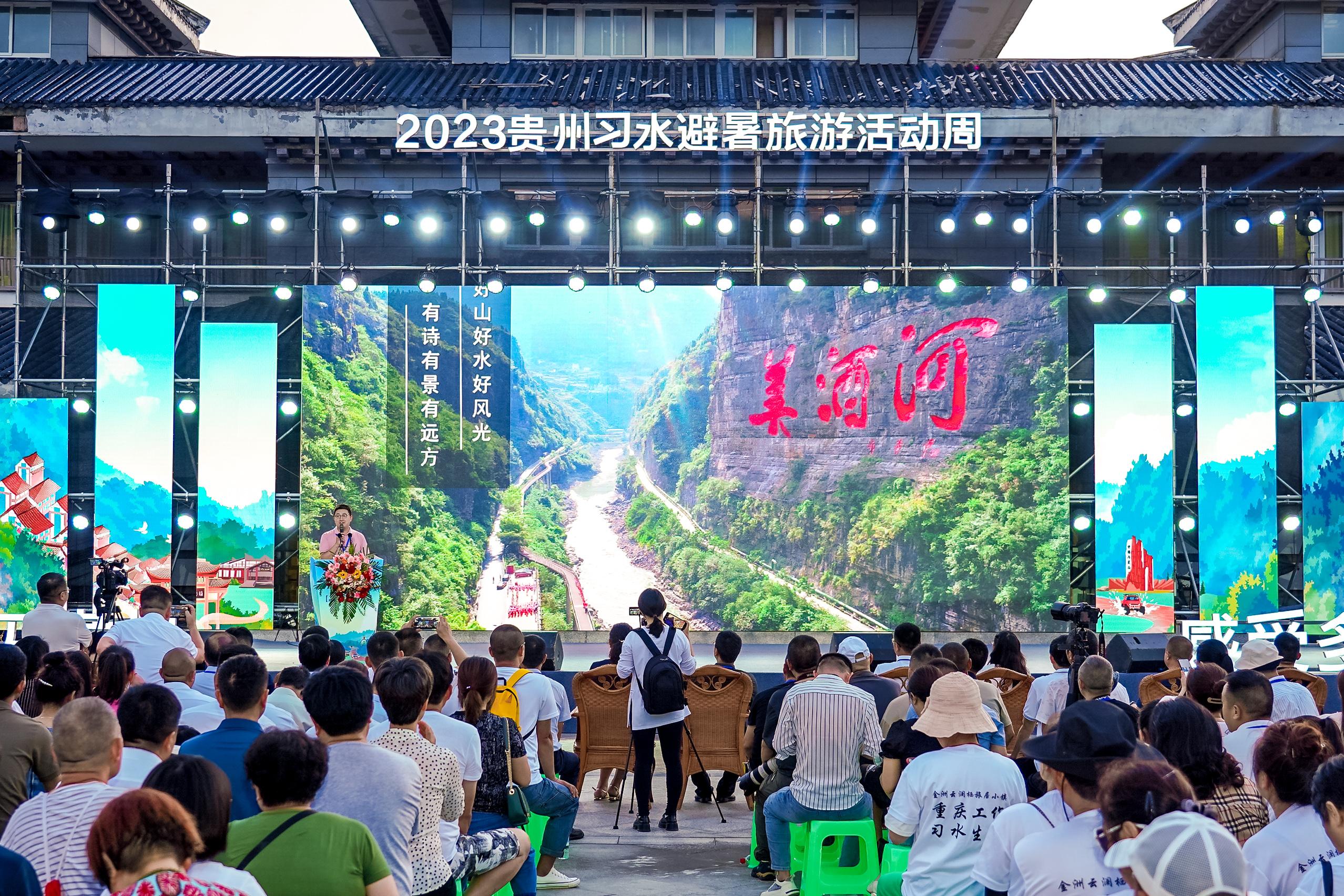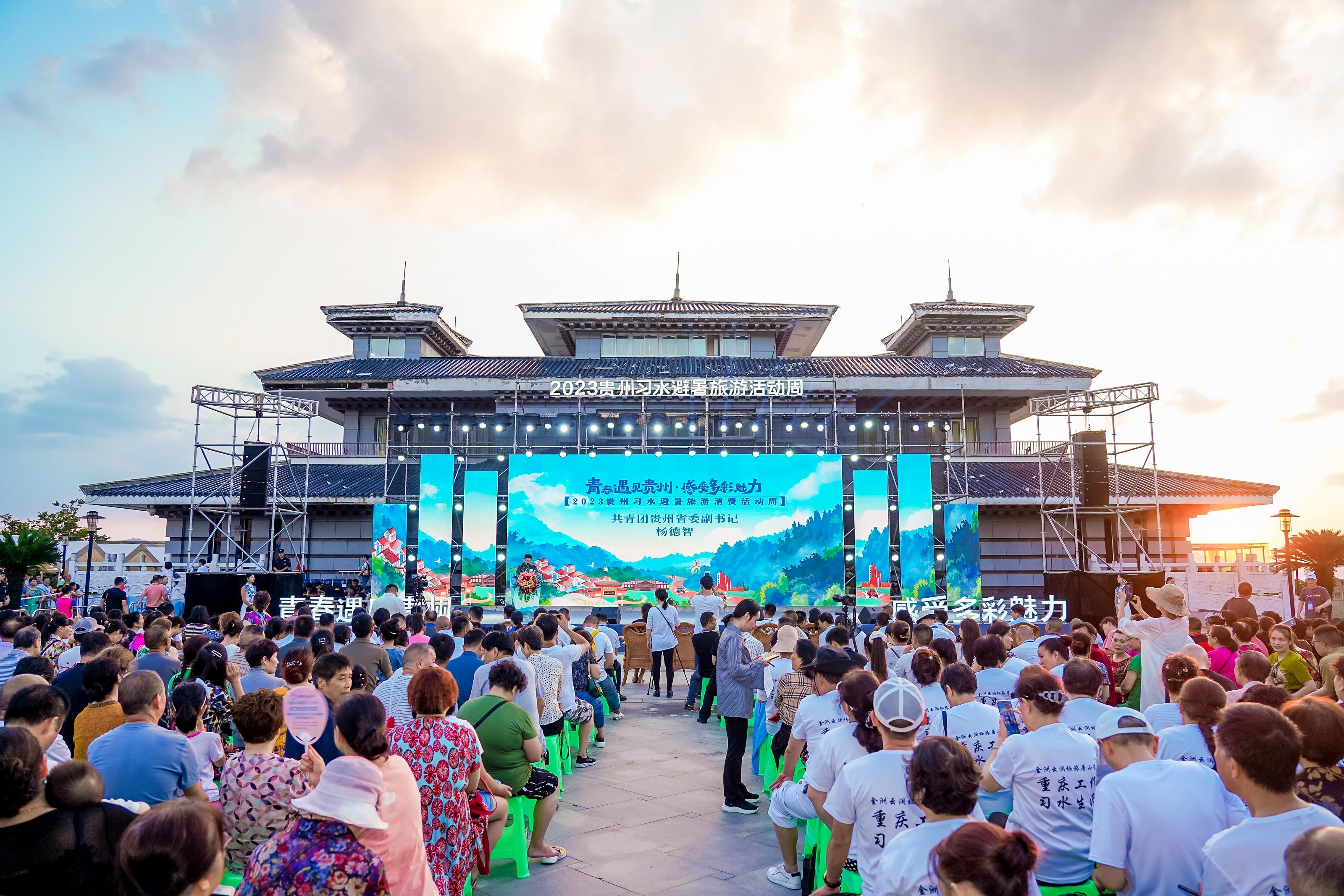 8月15日,由共青团贵州省委、贵州省文化和旅游厅主办的“青春遇见贵州·感受多彩魅力”2023贵州习水避暑旅游消费活动周在习水县寨坝镇启动。活动周以青年消费市集、“流光溢彩夜遵义”中青年艺术节、“等你来挑战”乡村趣味跑、“露天星空”观影展播四大主题活动为核心,热情邀请全国各地游客前来避暑打卡,感受清凉惬意,乐享旅居生活。