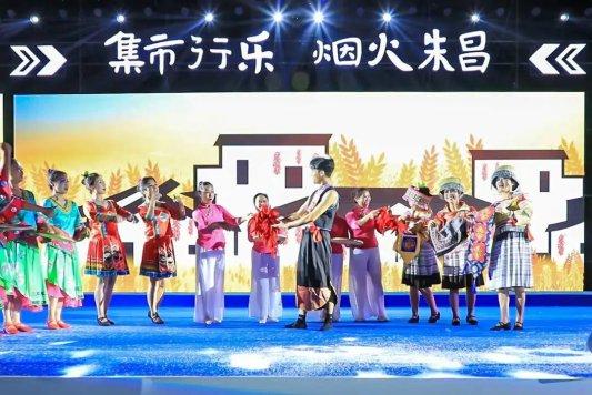 闭幕仪式现场,人头攒动、摩肩接踵,观众把舞台围了一层又一层,好不热闹。演出中,围绕“传承”“使命”“开创”等三大篇章朱昌故事的卷轴徐徐展开。从庄重典雅的乐器群奏到精彩炫目的舞蹈表演,从民族故事的深情演唱到清爽明快的群口说唱,让现场观众一波“嗨”过一波。闭幕仪式